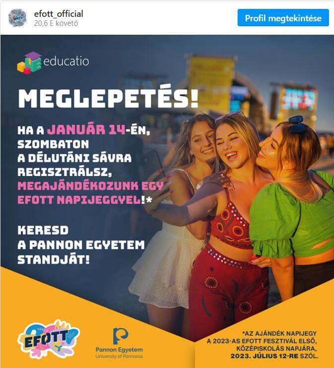 #EFOTT Gyere ki szombaton az Educatiora, és szerezd meg EFOTT napijegyed a Pannon Egyetem standján!