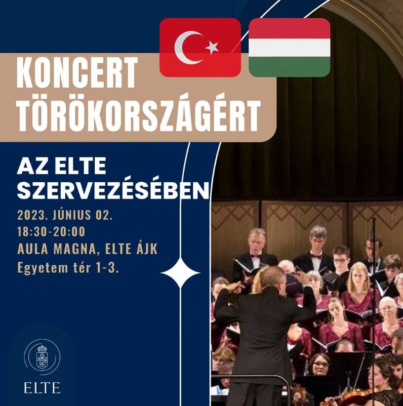 #ELTE 2023. június 2-án az Eötvös Loránd Tudományegyetem és Törökország budapesti nagykövetsége segélykoncertet rendez az ELTE Állam- és Jogtudományi Karának épületében! A földrengés hatásai még most is érződnek, és támogatásra továbbra is szükség van! A bevétel 100%-át a rászorulóknak ajánlják fel. A jegyek megváltásával Te is segíthetsz 💕