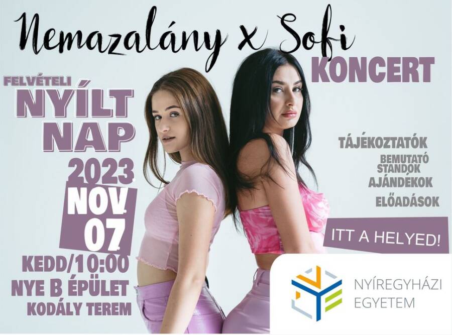#NYE November 7-én 10:00 órától lehetőség lesz ,egisme4rkedni az egyetemmel. Aznap szárfellépők is lesznek: Nemazalány és Sofi.