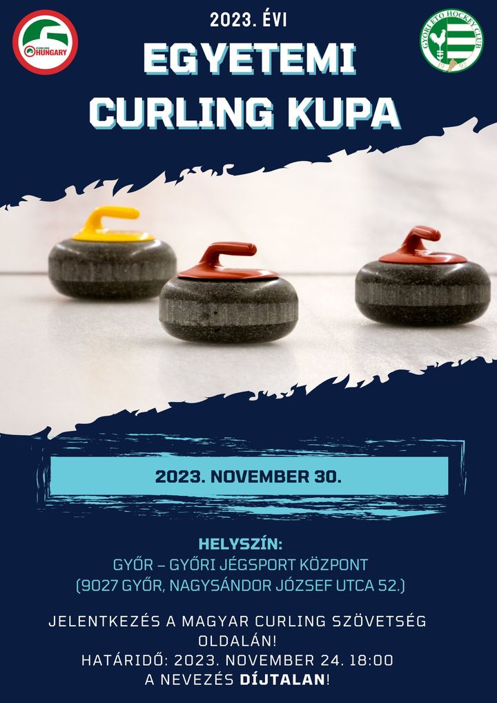 #SZE 2023. november 30-án, a Széchenyi Egyetem támogatásával Győrben kerül megrendzésre az I. Országos Egyetemi Curling Kupa, amelyre az ország bármely egyeteméről várják a résztvevő csapatokat.